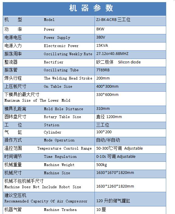此机装有高敏度5557防火花保护装置,可以把模具发生火花的机率降低95%,对高周波模具和产品起到很大的保护作用。这台机器可以单人操作,节约人工成本。它由振嘉机械设备有限公司专业制造,机器质量已通过欧盟CE质量出口检测和ISO9001机器质量检测;