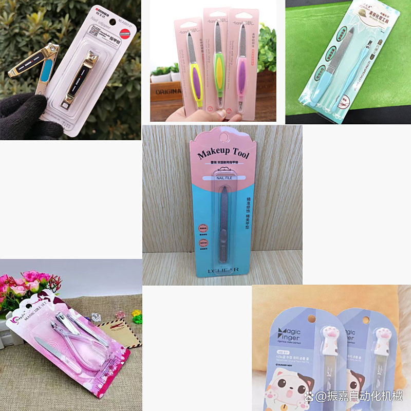 指甲锉自动吸塑包装机 本产品适用于PVC、PET、PP等吸塑泡壳与纸卡的封合包装。可广泛用于指甲锉、玩具、文具、手机壳、日用品、唇膏、电器元件配件、螺丝、胶水等多种商品的封合包装。